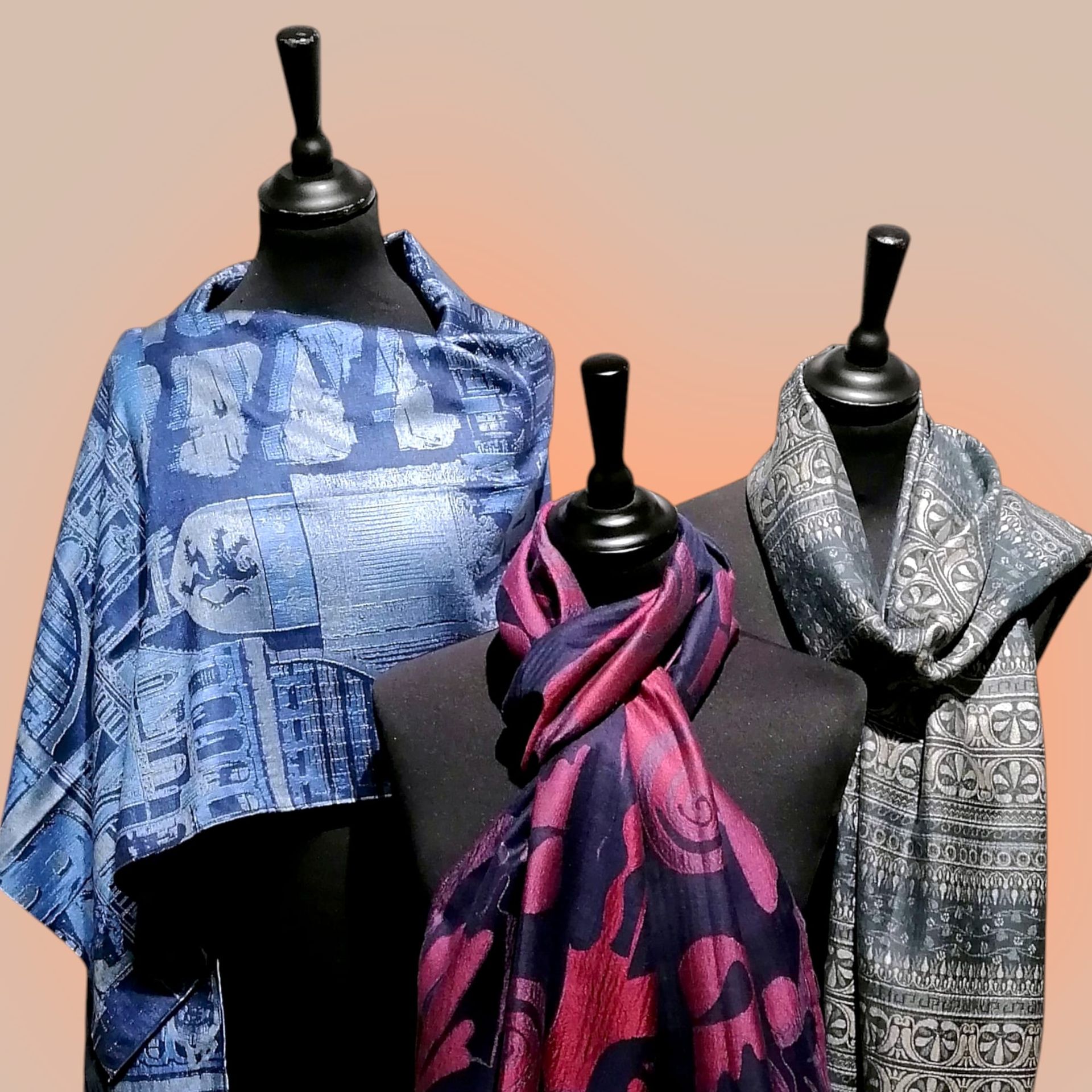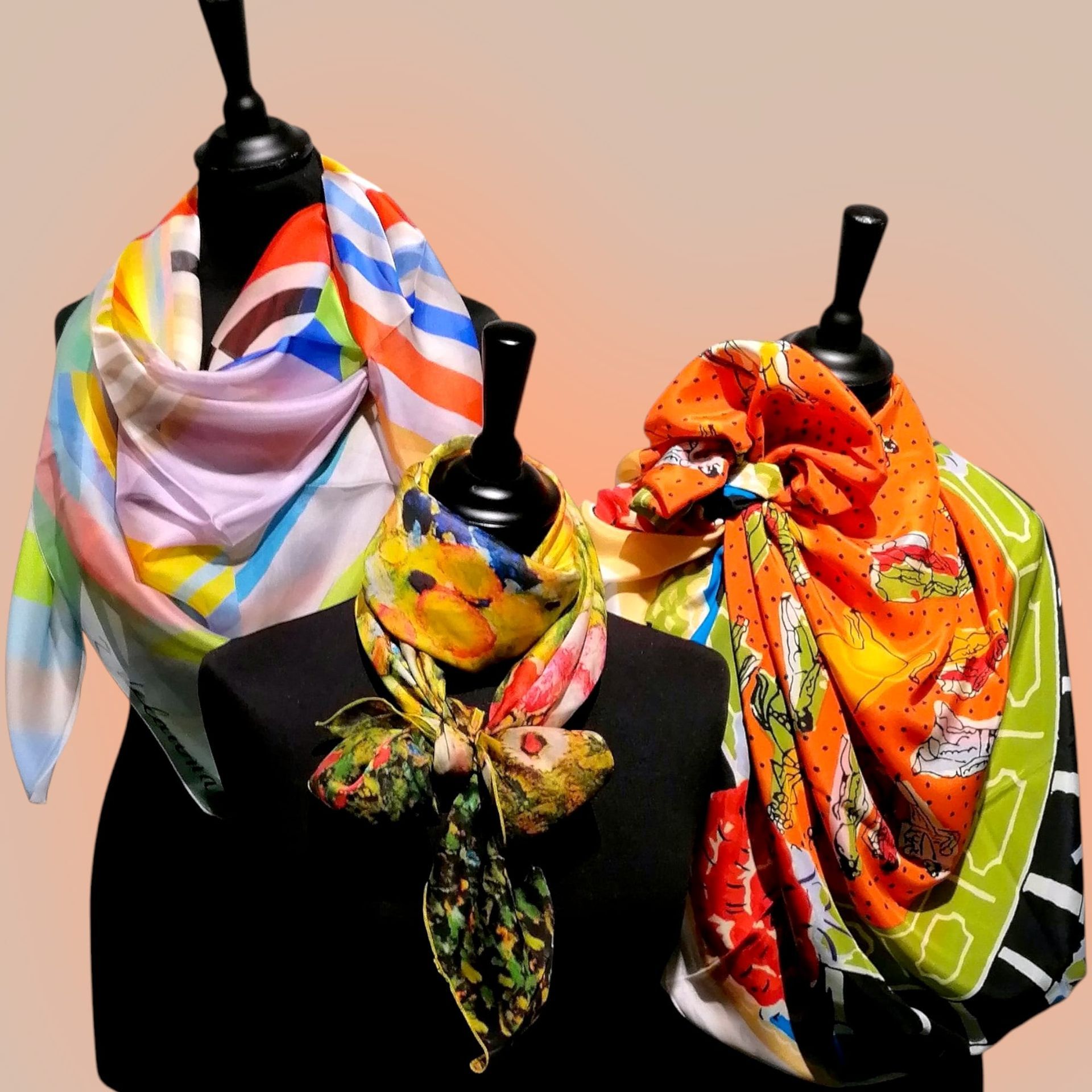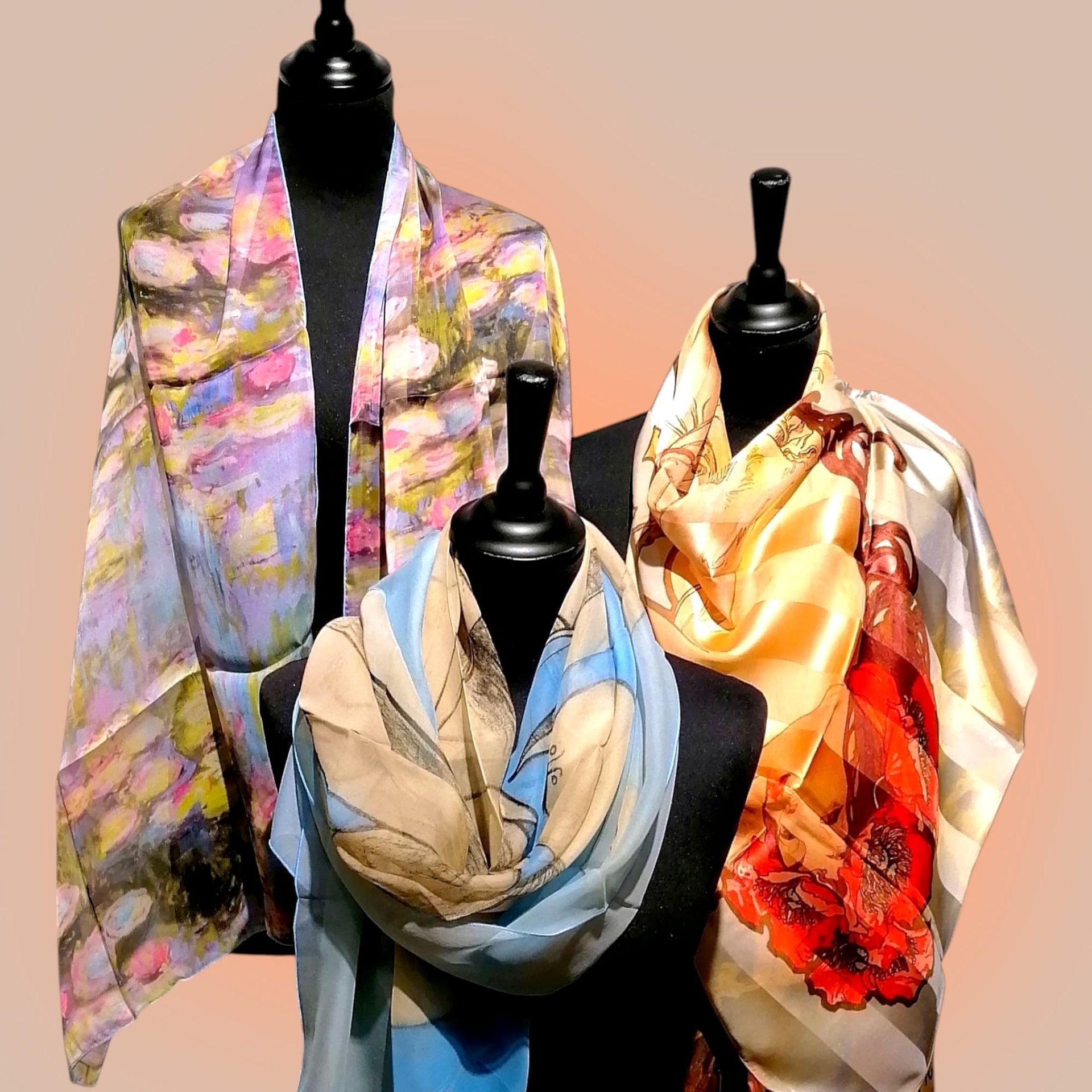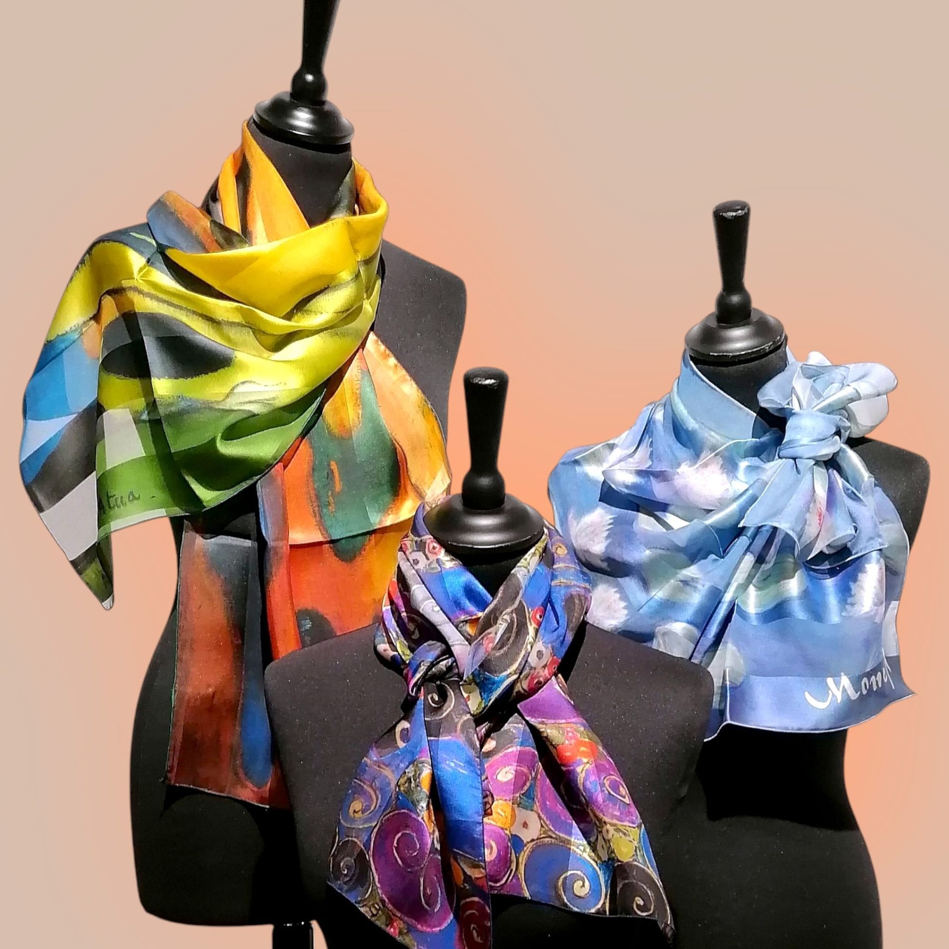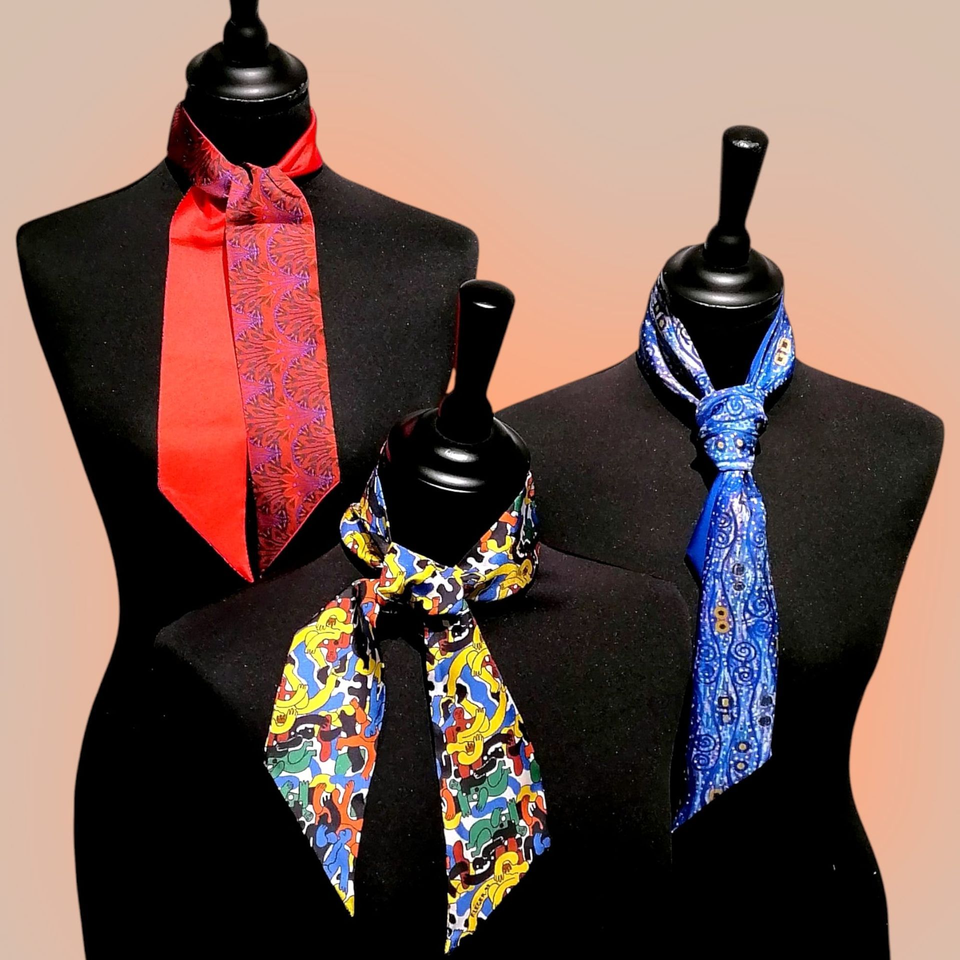 Notre collection de foulards et cravates est issue d'une étroite collaboration avec le monde artistique.